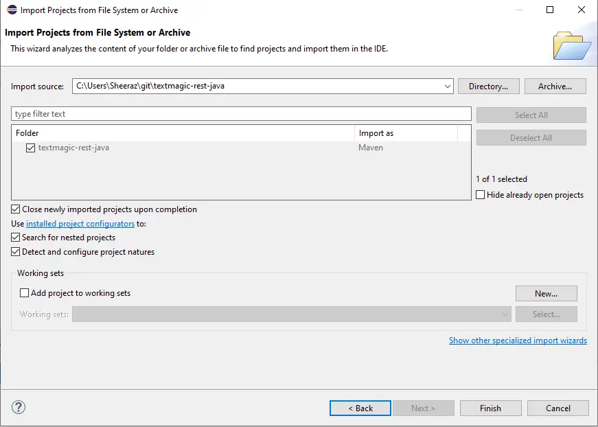 Verwenden Sie Eclipse, um die TextMagic-API zu installieren