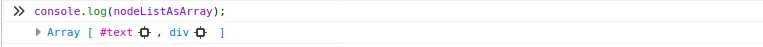 Wie erwartet wurde die obige NodeList nodeListForBody in ein Array nodeListAsArray umgewandelt.