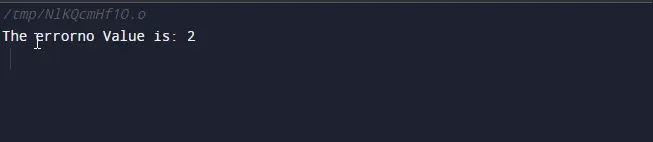 Entonces creará un error y se establecerá un valor errno. Luego imprimiremos su valor.