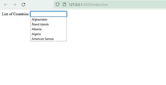 Par exemple, si option.innerHTML = "IN" et option.value = "INDIA", lorsque la liste est visible, vous verrez INDIA comme option, mais après avoir sélectionné l’option INDIA, à l’intérieur le champ de saisie, vous obtiendrez IN. Dans notre exemple, nous définissons ces deux valeurs de la même manière.