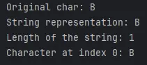 The output illustrates that we successfully converted the char to a String and performed operations on it without encountering the dereferencing error.