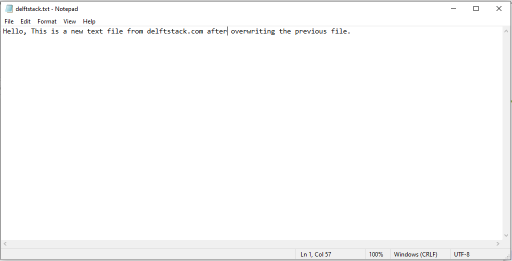 Hello, This is a new text file from delftstack.com after overwriting the previous file.