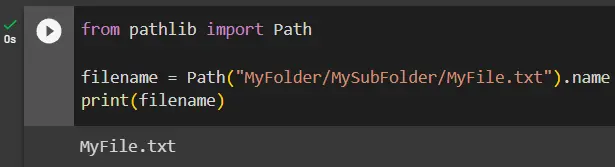 filename = Path("MyFolder/MySubFolder/MyFile.txt").name