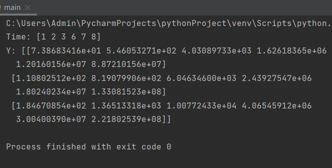 In the output, you can observe that the time values are spread throughout the interval 0 to 10. Similarly, the output contains a y value corresponding to each time value.