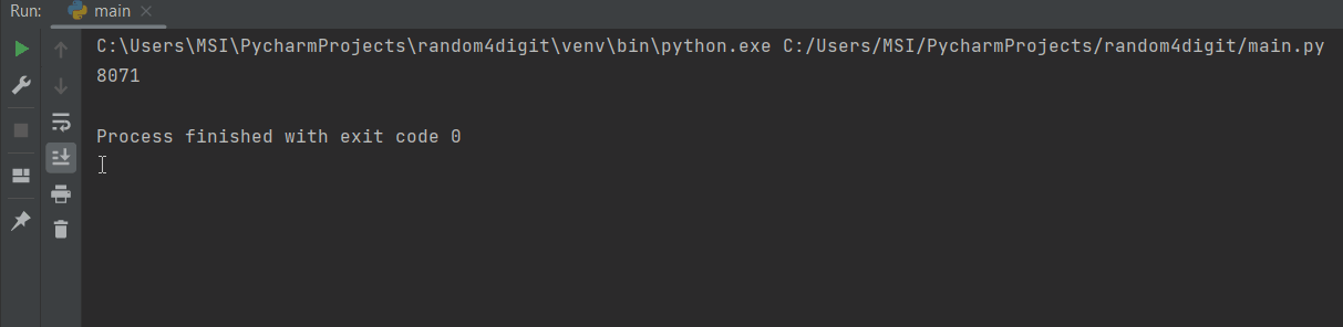 As you can see, it delivers us a random four-digit number each time we run the code.