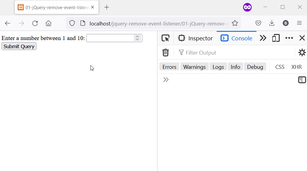 jQuery off() API は、名前が示すように、選択した要素からイベント ハンドラーを削除します。 次のコードには、0 から 10 までの数値を受け入れるフォーム入力があります。