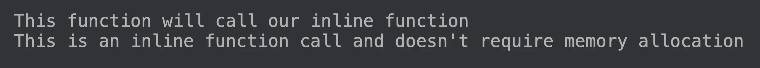 これは、高階関数が呼び出されるたびにメモリ割り当てが必要であることを意味します。 したがって、高階関数を呼び出すたびに実行時のオーバーヘッドが発生します。