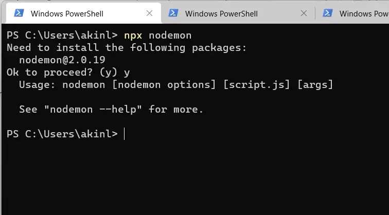 これで問題が解決したので、PC で nodemon が利用可能かどうかを確認できます。