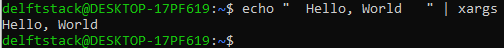 xargs コマンドは、文字列の最初と最後のスペースを削除します。文字列の内部空白は削除されません。上の画像から、, と world の間の内部空白は削除されていませんが、文字列の最初と最後のスペースは削除されています。