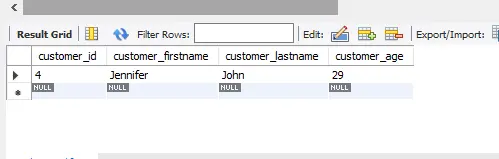 order と customer という名前の 2つのテーブルを使用しています。customer テーブルのフィールドには、customer_id、customer_firstname、customer_lastname、customer_age、および customer_salary が含まれます。
