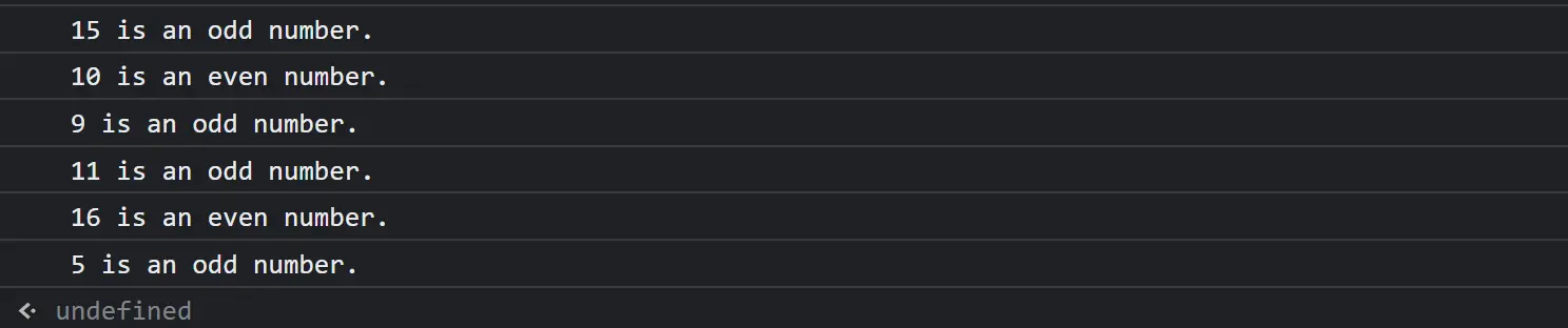 여기서 숫자 배열은 일상 생활에서 사용하는 임의의 숫자로 구성됩니다. currentValue, index, array 및 if 조건문과 함께 forEach() 함수를 사용하여 숫자가 홀수인지 아닌지를 출력했습니다.