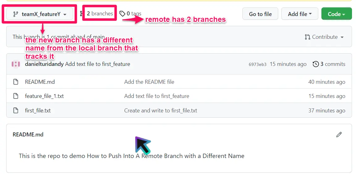 讓我們看看這些引數如何幫助我們 git push 到另一個分支。