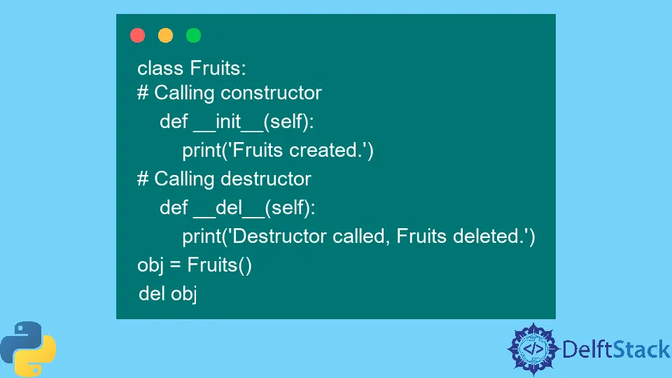當需要清理 Python 物件時呼叫解構函式。它基本上與建構函式的作用完全相反,用於反轉建構函式執行的操作。解構函式主要用於組織程式並實現編碼標準。