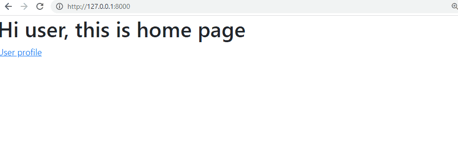 保存并运行服务器后,我们将转到 /profile。我们将看到,如果我们转到我们创建的链接,它会将我们发送到同一页面,因为我们是用 index.html 文件内的代码 <a href='/profile'>User profile</a> 直接引用它。