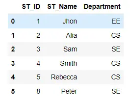 mysql("SELECT * FROM df WHERE Department = 'SE'")
